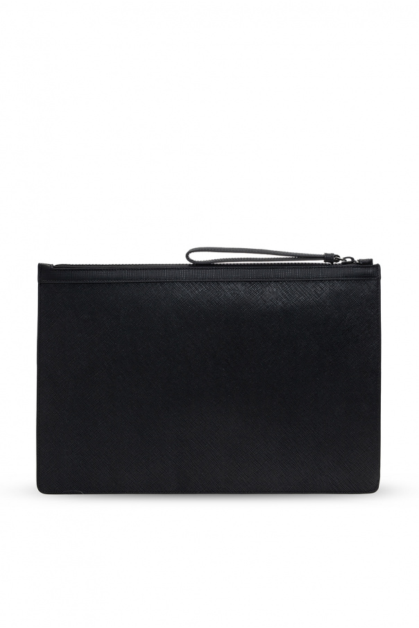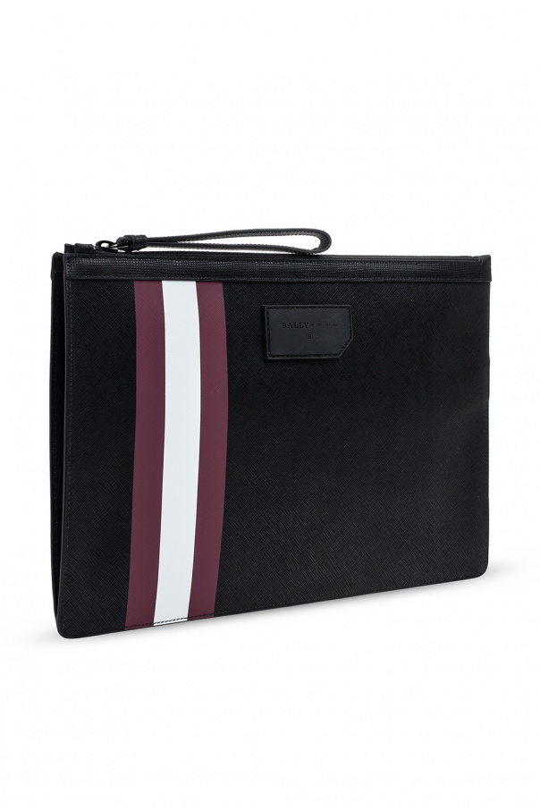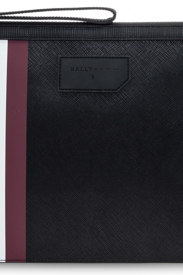Black ‘Bollis Large Of’ clutch from Bally. Crafted from textured bovine leather, this design fastens via a zip and showcases a rubberised patch, a maroon and white logo print, an adjustable shoulder strap and one internal compartment with two slip pockets.