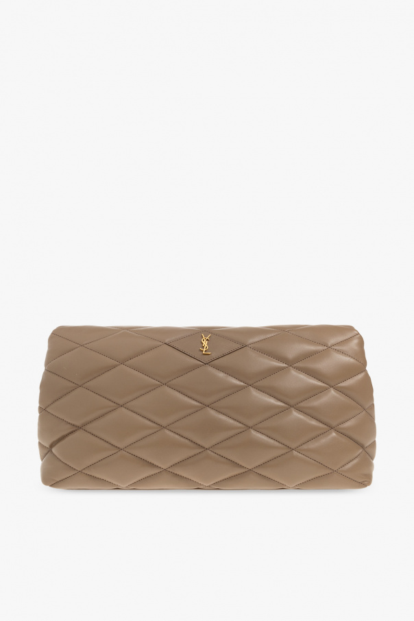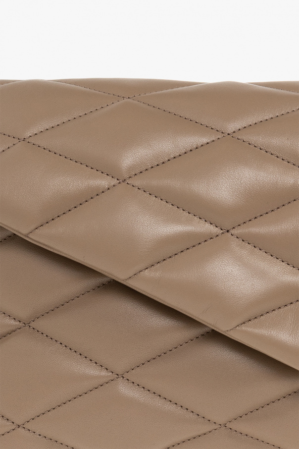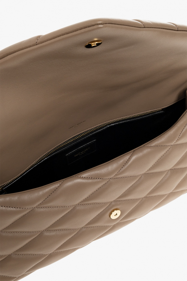 Light brown ‘Sade’ handbag from Saint Laurent. Crafted from lamb leather accentuated with geometrical quilting, this design features a magnetic snap fastening, antiqued gold-tone monogram hardware at the back and a black-clad interior with one zip pocket.