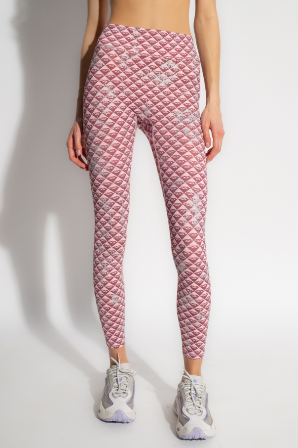 Pink and maroon 'AWSB-JONAS-WT41' leggings from Diesel, the 'DIESEL SPORT' collection. Embellished with a monogram motif, this style features an elasticated waistband and a printed silver-tone logo.