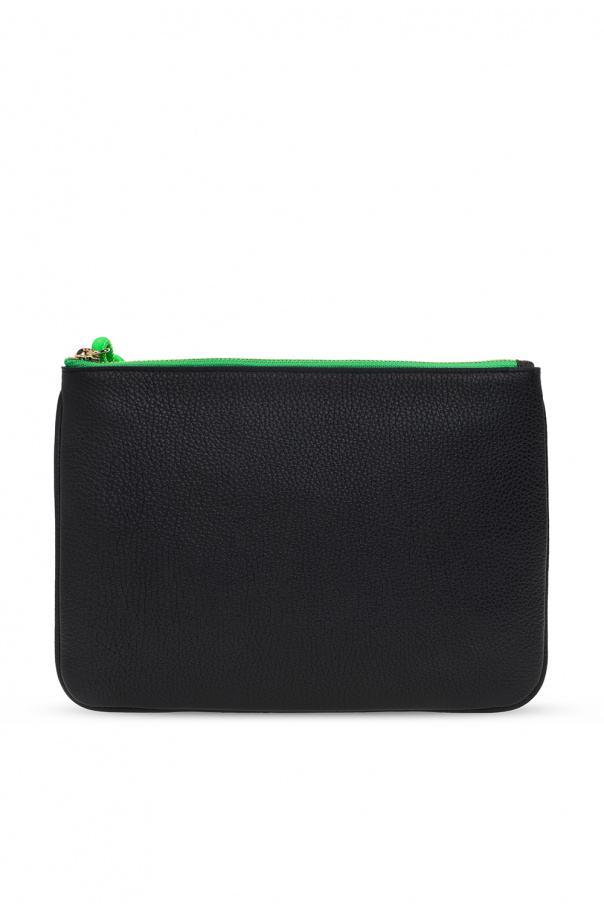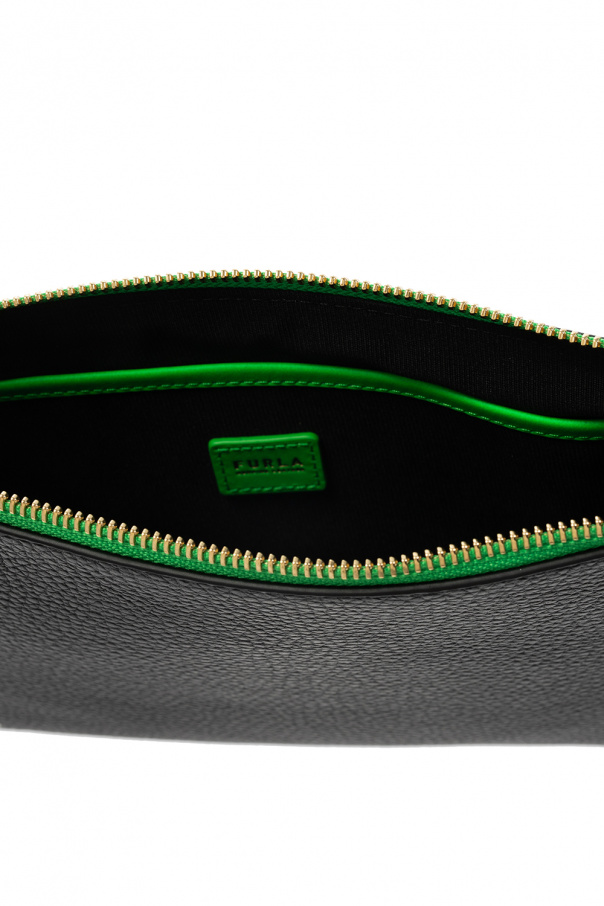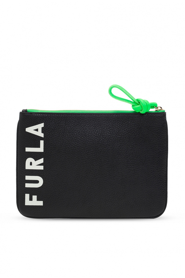Black and green ‘Essentials’ clutch from Furla. Crafted from textured leather, this design features zip fastening, logo print and one internal compartment with one slip pocket.
