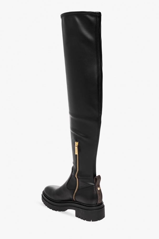 Black ‘Cyprus’ boots from Michael Michael Kors. Crafted from leather, this knee-high pair is complete with a side zip and black rubber sole.