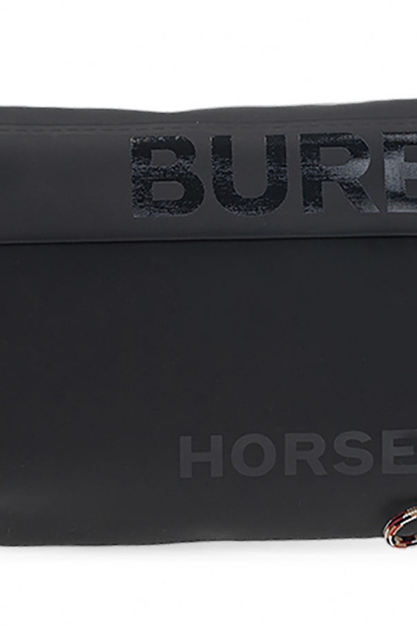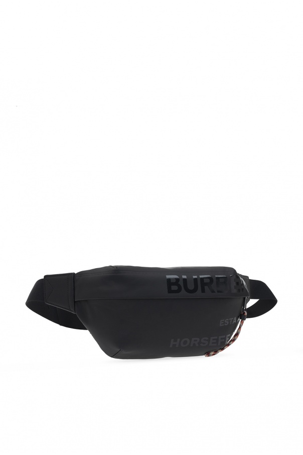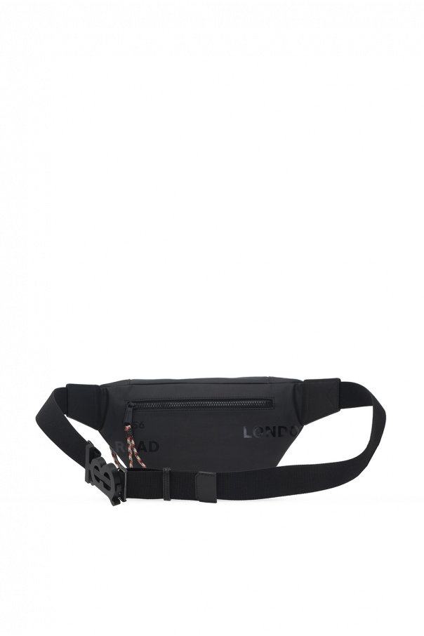 Black belt bag from Burberry. Fastened with a zip, this design features a logo print, back zip pocket, adjustable belt and one internal compartment with one slip pocket.