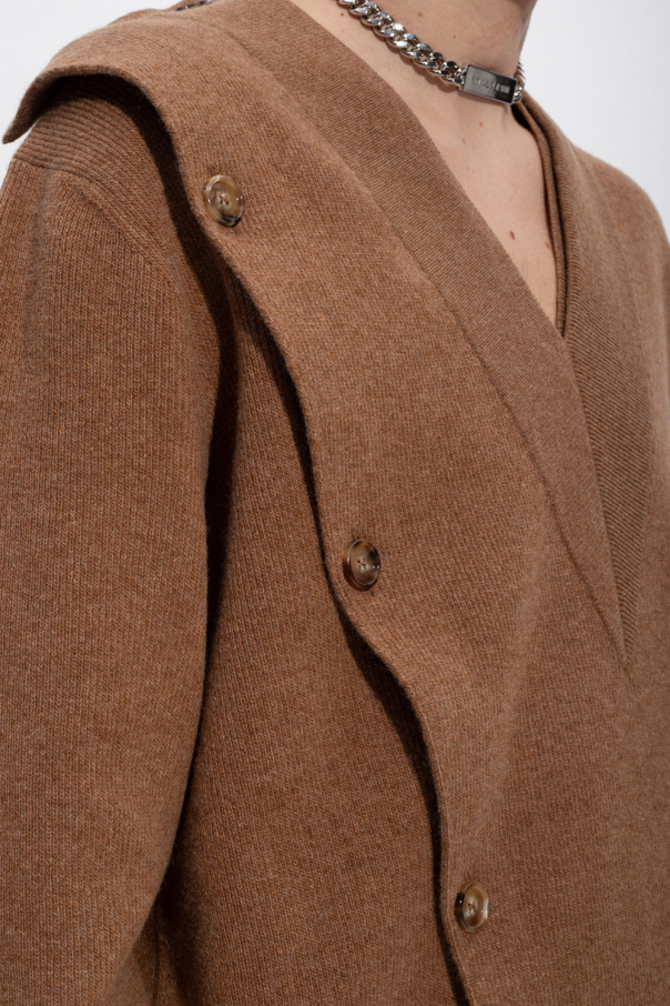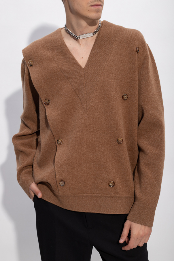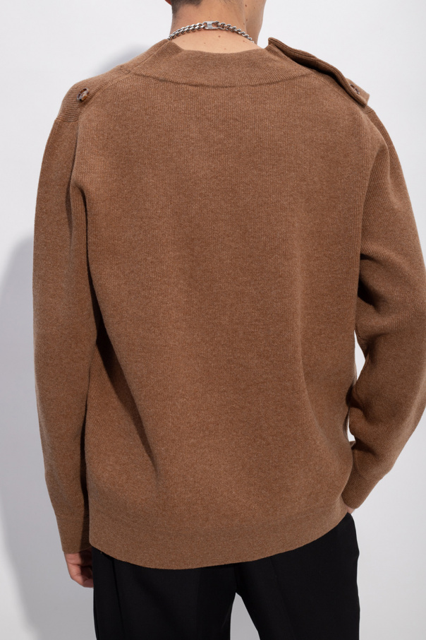 Brown sweater from Burberry. Crafted from wool, this style features a V-shaped neckline, long sleeves and distinctive button fastenings on the front.