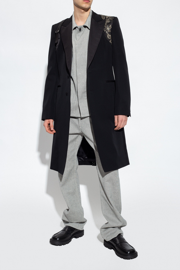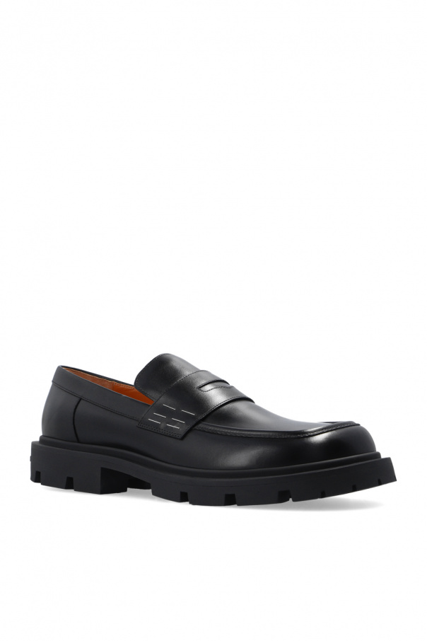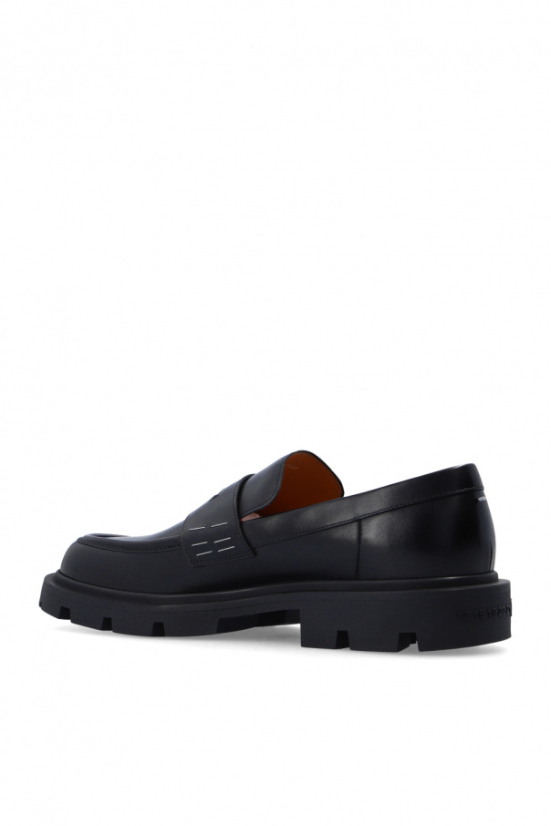 Black leather loafers from Maison Margiela. Decorated with an applique. Characteristic white stitching on the back. Black rubber sole.