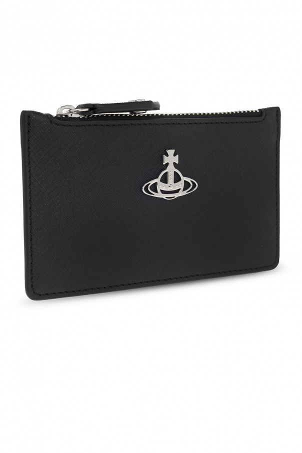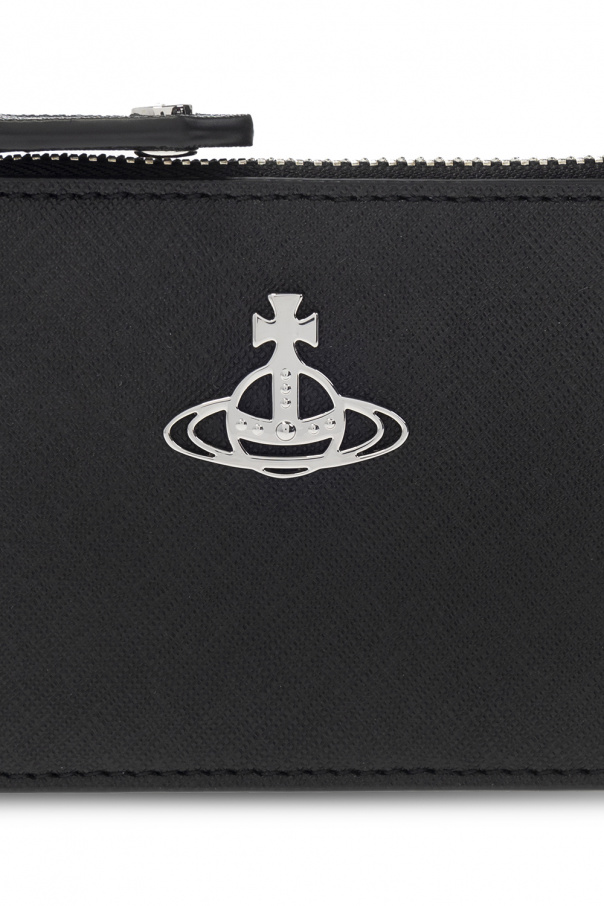 Black ‘Derby’ card case from Vivienne Westwood. Crafted from vegan leather, this item features a logo application, four card slots, silver-tone metal hardware and a zip compartment.