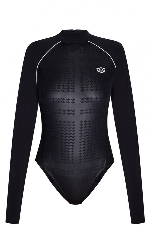 Black body from ADIDAS Originals. Fastened at the back with a zip, this design features a printed pattern, black and white logo patch, snap fastenings and long sleeves.