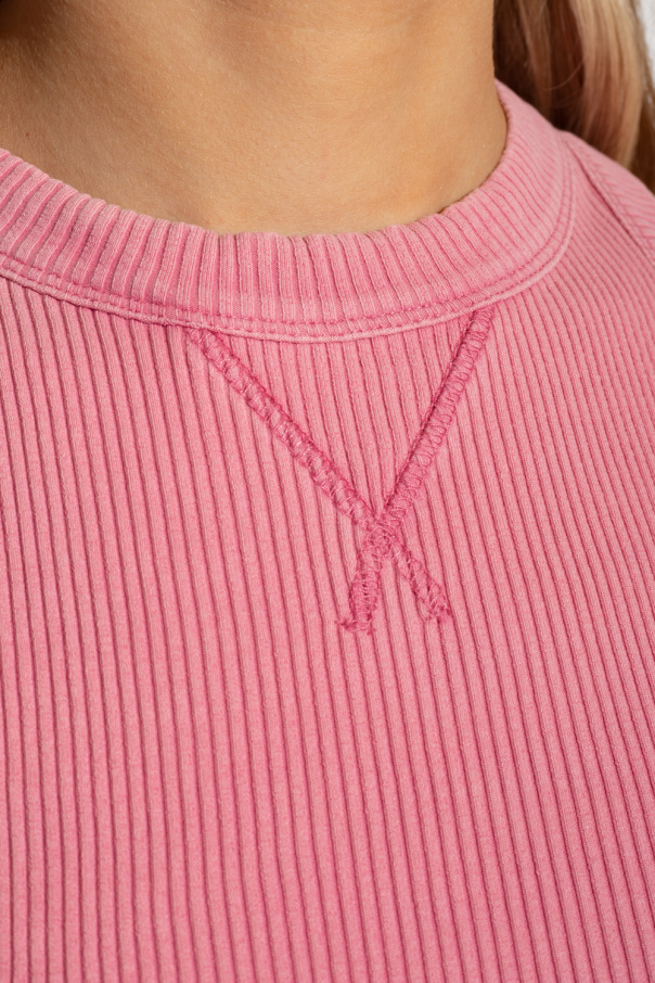 Pink ‘Ivy’ tank top from Eytys. Crafted from a ribbed cotton blend, this style features a round neck and a logo patch at the back.