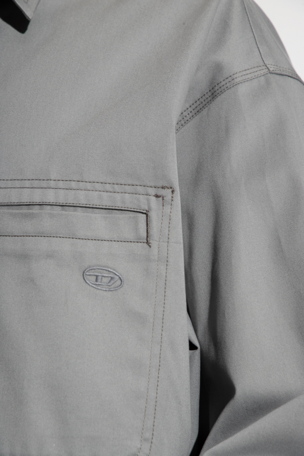 Grey ‘S-DEWNY’ shirt from Diesel. Crafted from cotton, this garment features button fastenings, embroidered logo pattern, button fastenings, two slip pockets and long sleeves with buttoned cuffs.