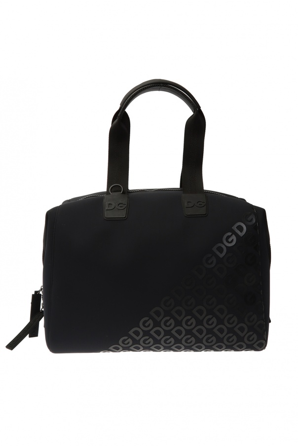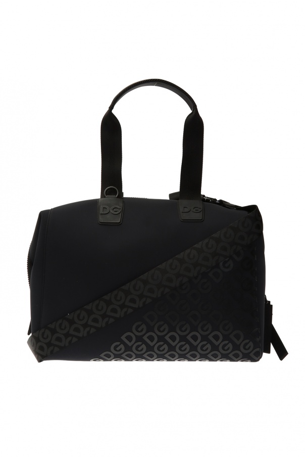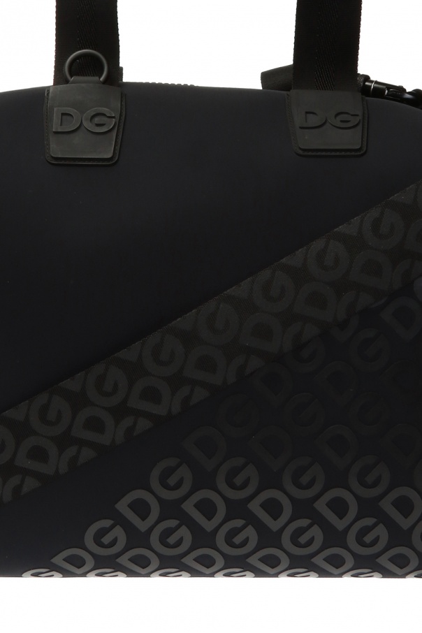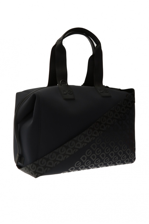 Black 'Millennials' duffel bag from Dolce & Gabbana. Fastened via two-way zip closure. Embellished with rubberised logo. Features two half-round handles, a detachable and adjustable shoulder strap with logo and interior with one compartment, one zip pocket and one velcro-fastened pocket inside.