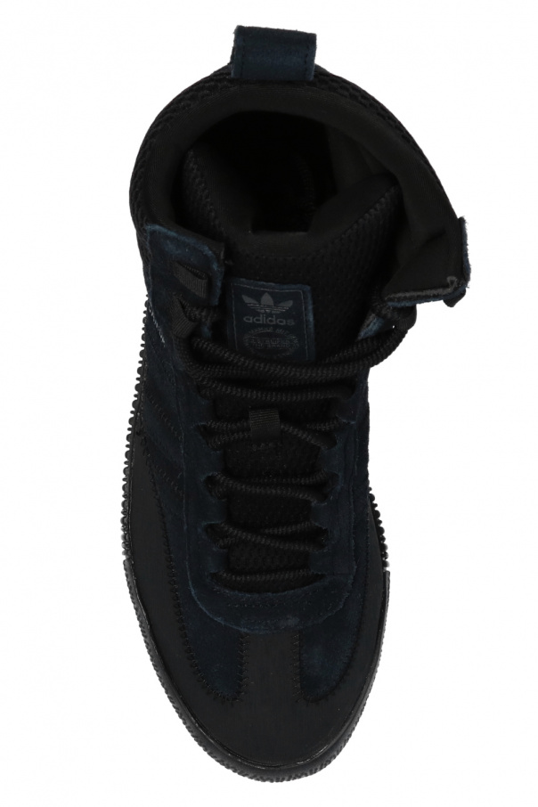 Black ‘Samba Boot’ high-top sneakers from ADIDAS Originals. Crafted from suede, this lace-up model sits on a black rubber sole and showcases a branded tongue patch and the iconic three stripes on the sides.