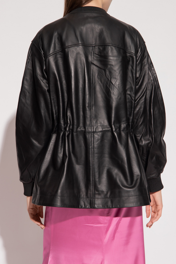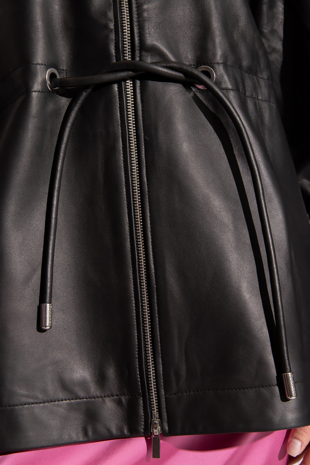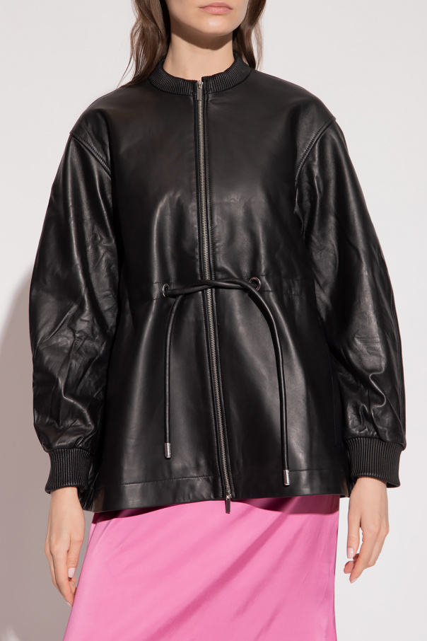 Black jacket from Proenza Schouler White Label. Crafted from lamb leather, this style features a zip fastening, a waist-cinching drawstring belt, two slip pockets and elasticized trims on the collar, bottom hem and cuffs.