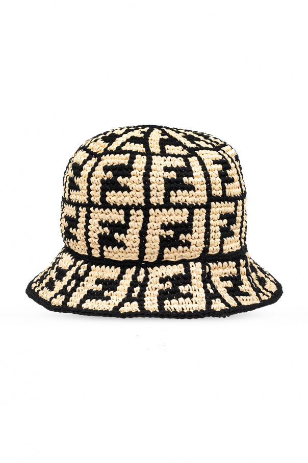 Beige and black hat from Fendi. Made of a viscose and cotton blend, this item features a woven logo pattern.