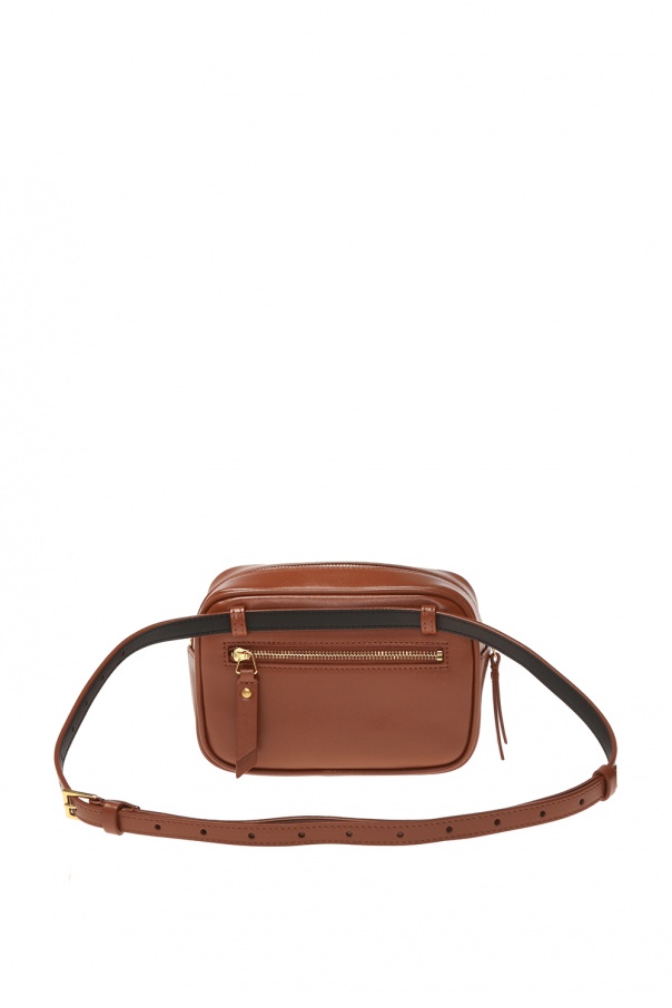 Beige ‘Marsupio’ belt bag from Saint Laurent. Made of brown leather. Zip fastening. Decorated with a logo applique in gold-tone. Adjustable belt. One compartment and 3 card slots inside.