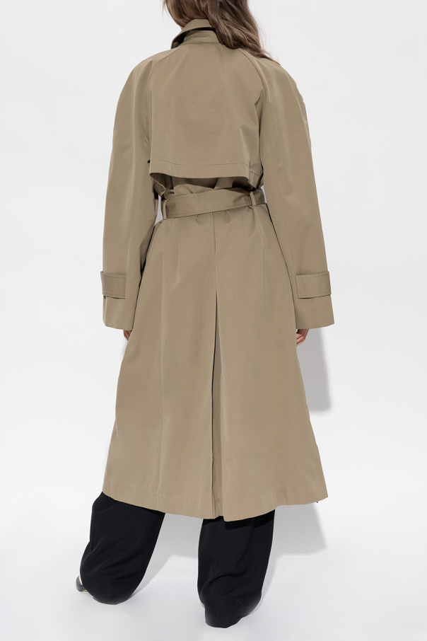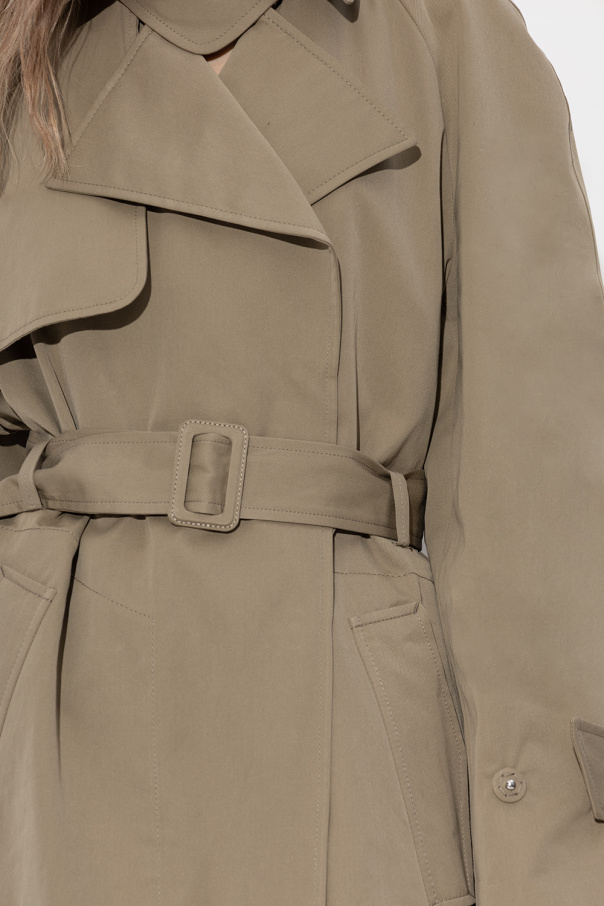 Green trench coat from BITE Studios. Made of cotton, this item features snap fastenings, tie waist, two slip pockets, long sleeves and single rear vent.