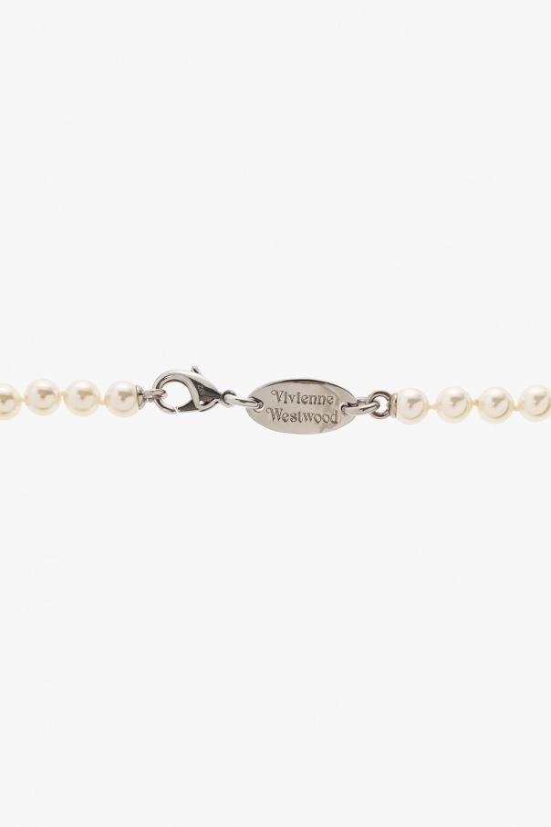 Cream and silver-tone necklace from Vivienne Westwood. Composed of glass pearls, this item features a lobster clasp fastening with an attached logo-engraved application.