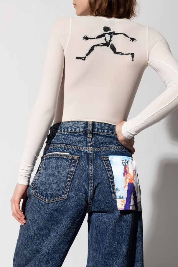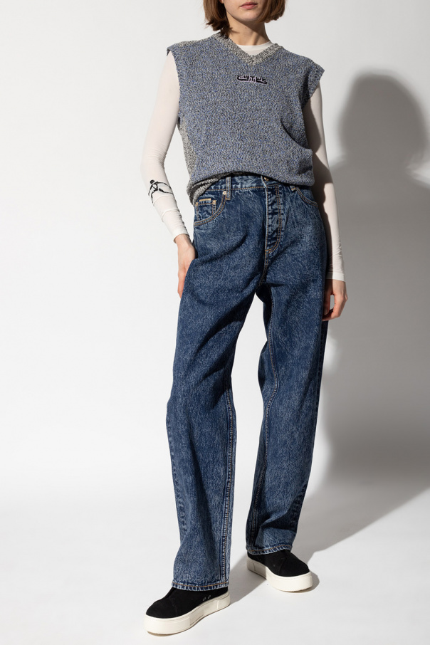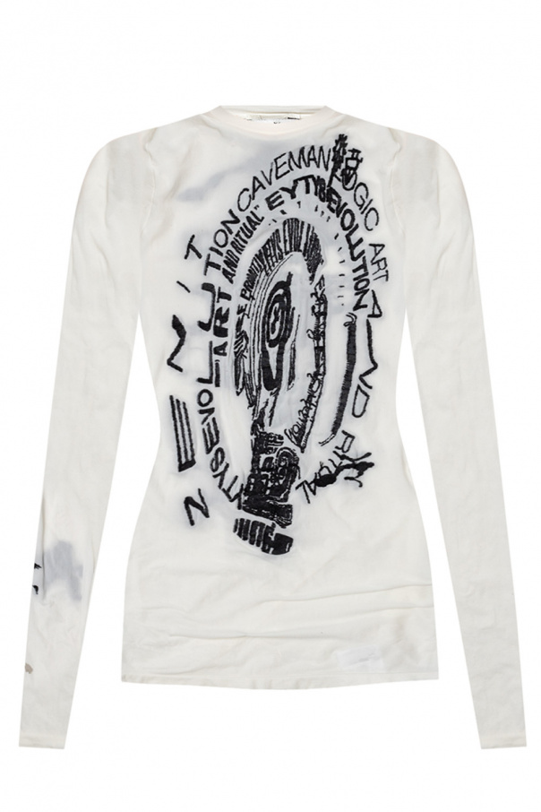 White top from Eytys. This round neck design features an embroidered logo pattern in black and ribbed trims at the neck, hem and cuffs.