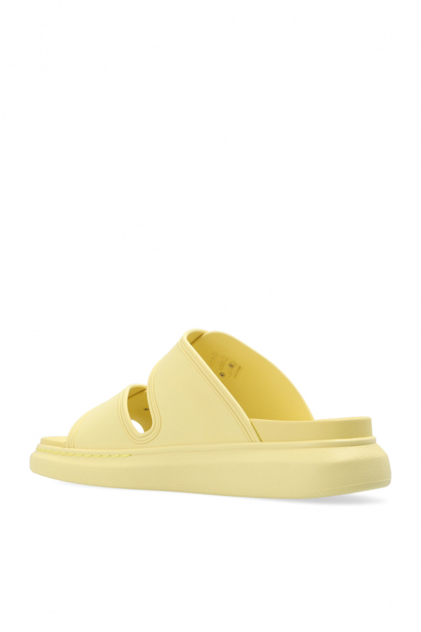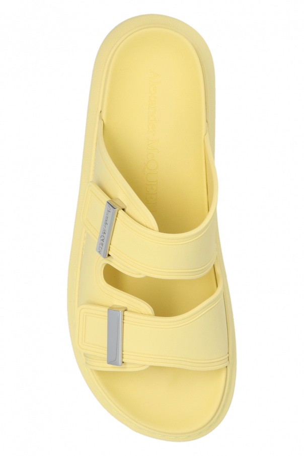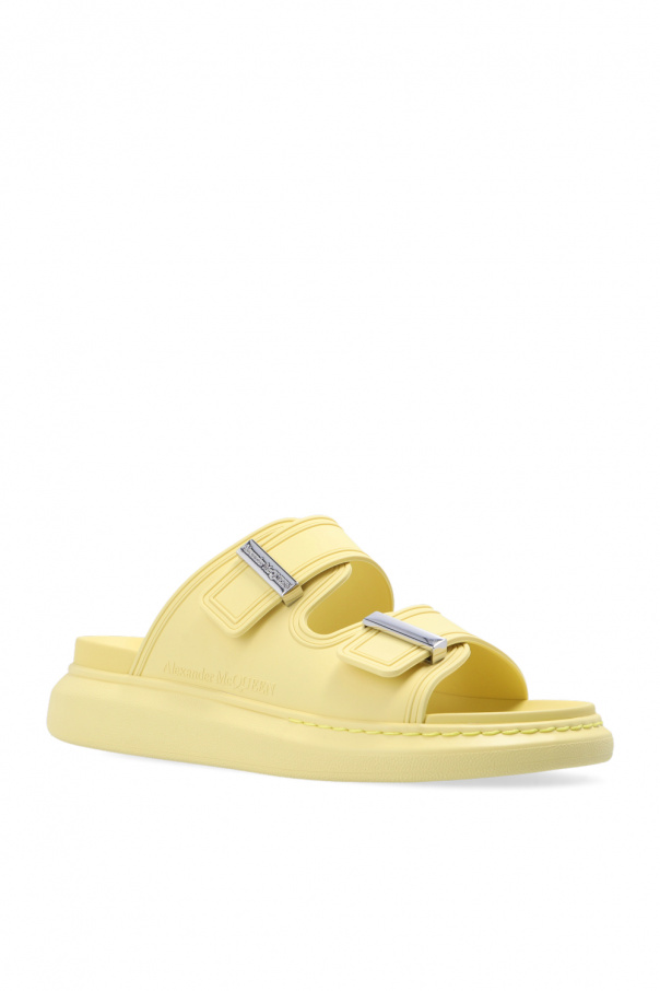 Yellow slides from Alexander McQueen. Resting on a yellow rubber sole, this pair features straps with silver-tone buckles and an embossed logo.
