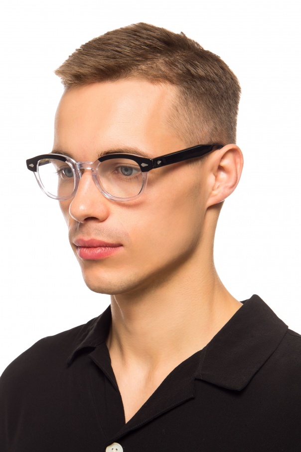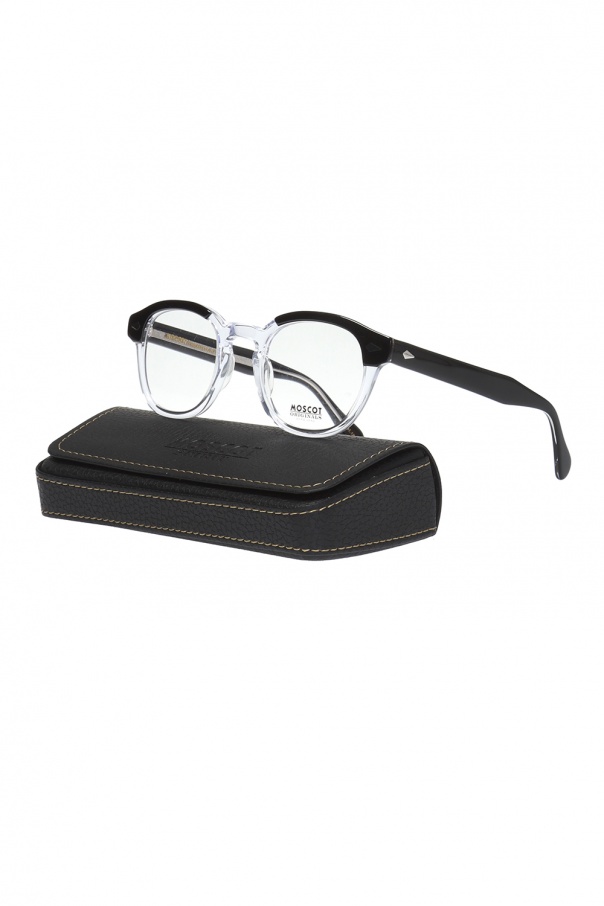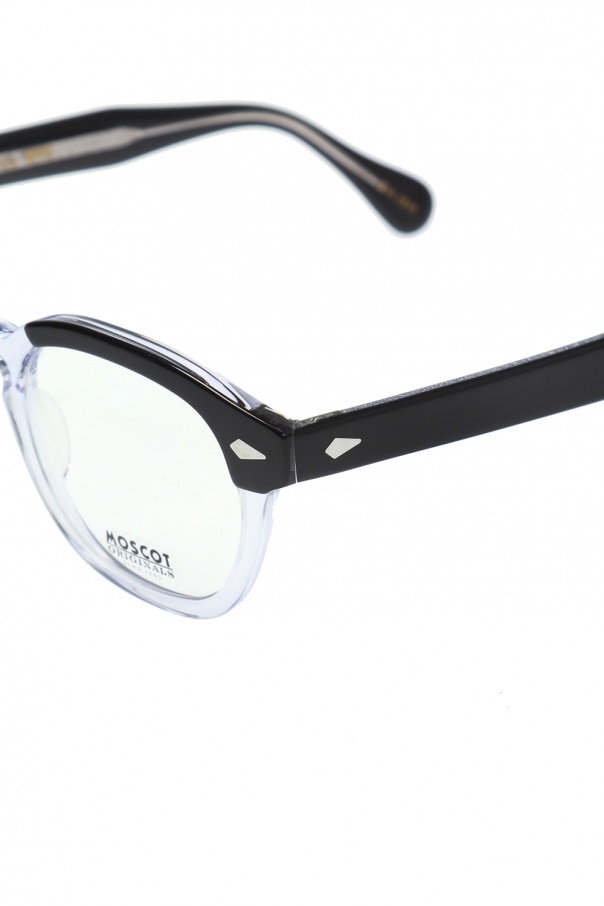Black and white ‘Lemtosh’ optical glasses from Moscot. Decorated with a logo print and transparent inserts.