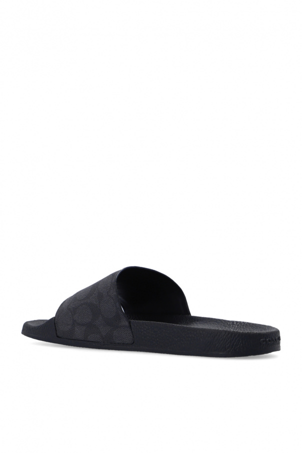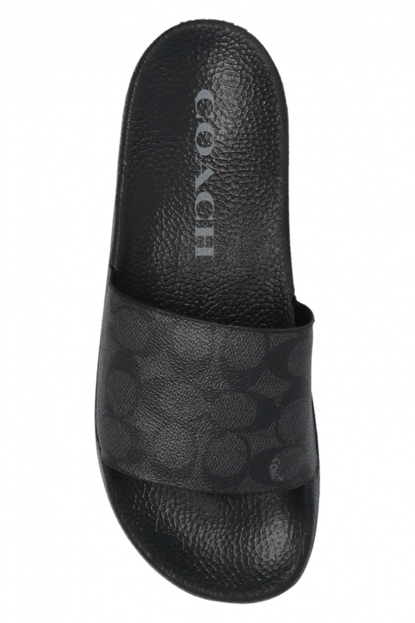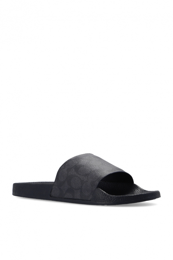 Black ‘Udele’ slides from Coach. Made of ‘Signature’ canvas, this pair features a monogram pattern and black rubber sole.