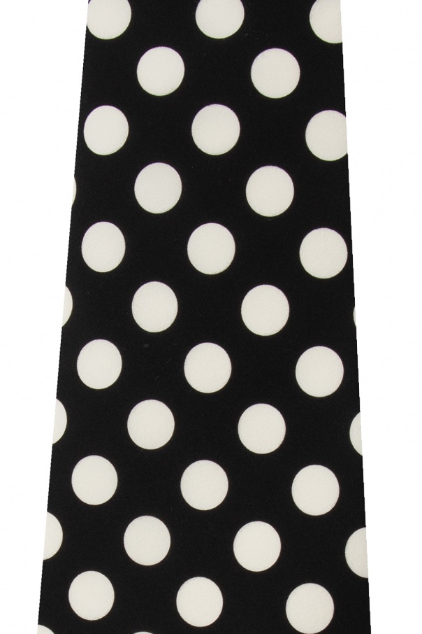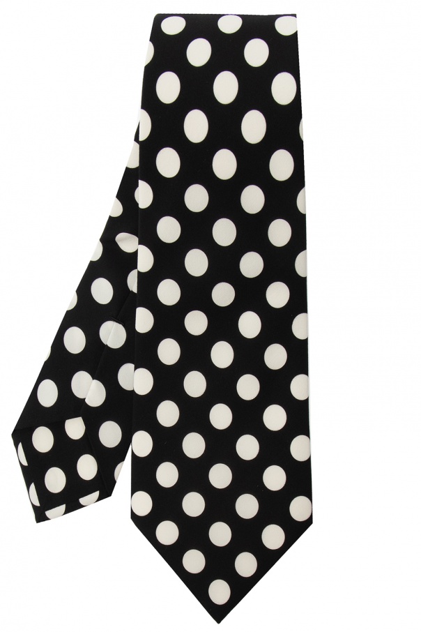 Black tie from Dolce & Gabbana. Crafted from silk, this accessory showcases white polka dot print.