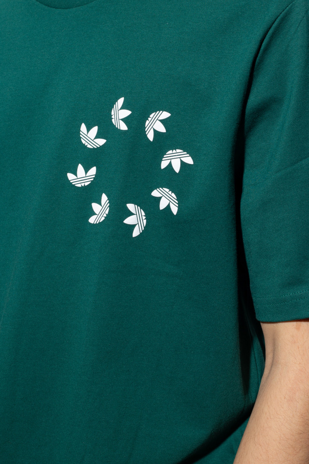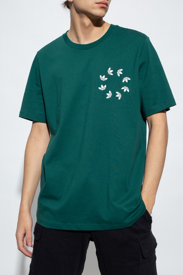 Green crewneck T-shirt from ADIDAS Originals. Made of cotton, this style features short sleeves, an elasticated collar and a white graphic print with the brand's logo.