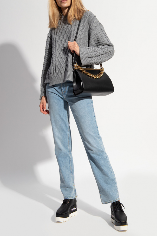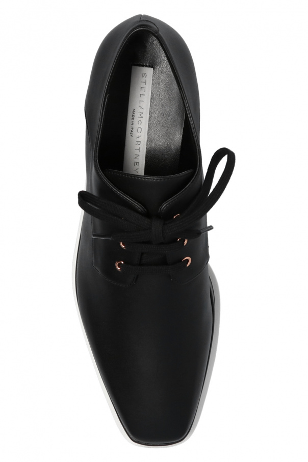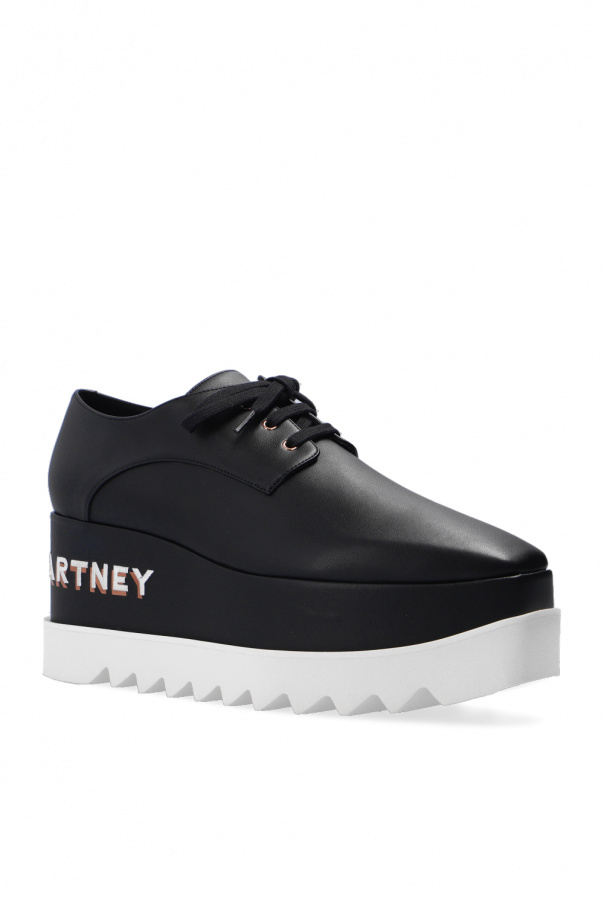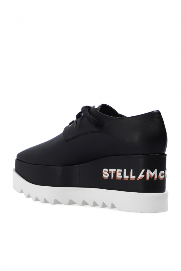 Black wedge shoes from Stella McCartney. Crafted from vegan rubber, this lace-up model sits on a sole in white and features an embroidered logo in white and brown.