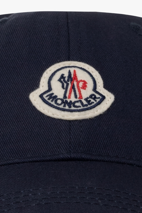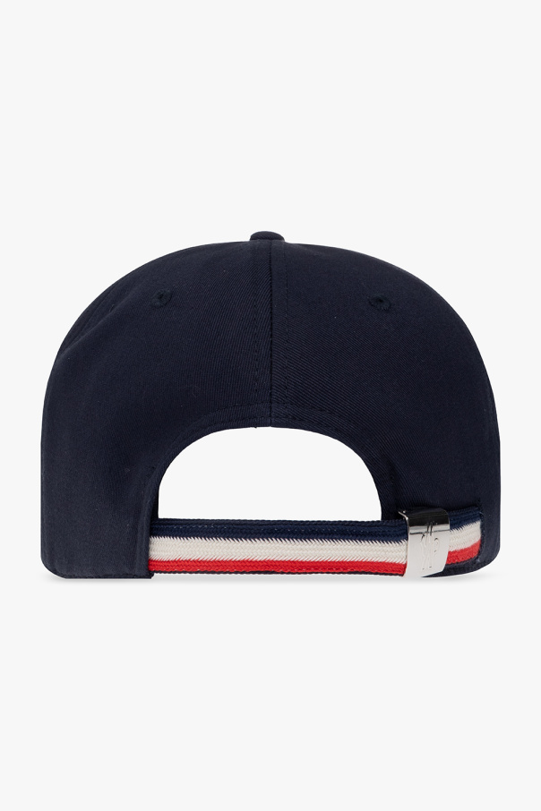 Navy baseball cap from Moncler. Made of cotton, this item features a multicolored logo patch and adjustable multicolored strap at the back with a silver-tone buckle.