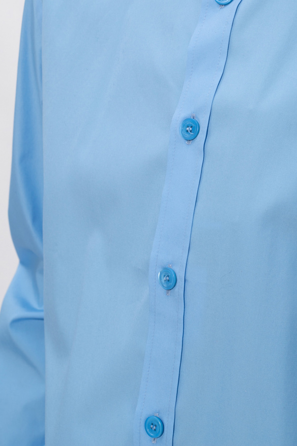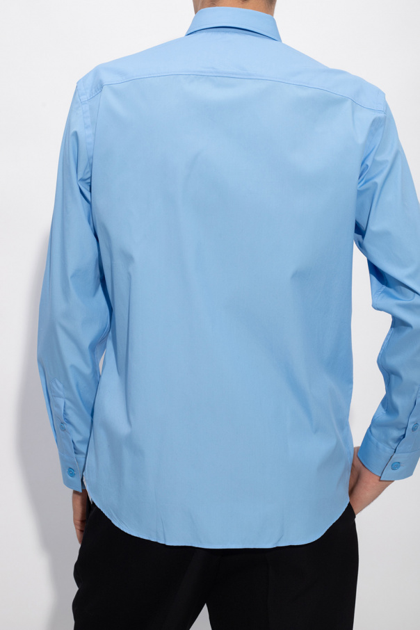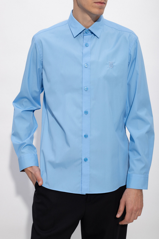 Blue shirt from Burberry. Crafted from cotton, this style fastens via buttons and showcases an embroidered logo on the front and long sleeves with button cuffs.