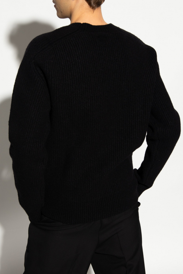 Black crewneck sweater from Bottega Veneta. Crafted from wool with a classic fit, this style features ribbed edges.