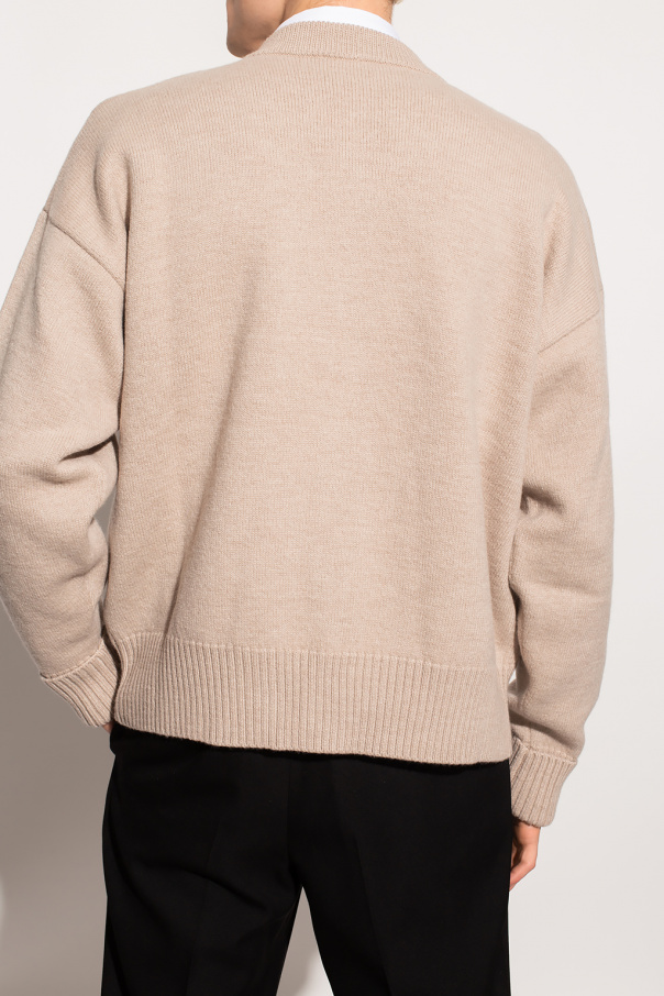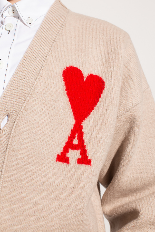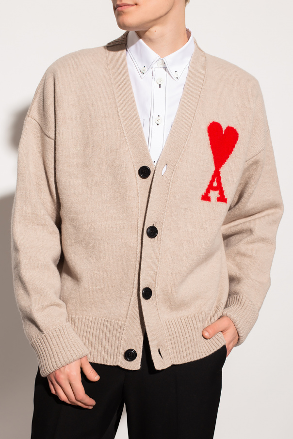 Beige cardigan from Ami Alexandre Mattiussi. Made of wool, this garment features button fastenings, a red logo embroidery and ribbed trims.