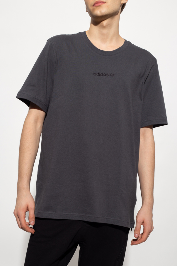 Dark grey T-shirt from ADIDAS Originals. Made of cotton from sustainable farms, this garment features black logo details and a ribbed crew neck. ADIDAS partners with the Better Cotton Initiative to improve cotton farming globally.
