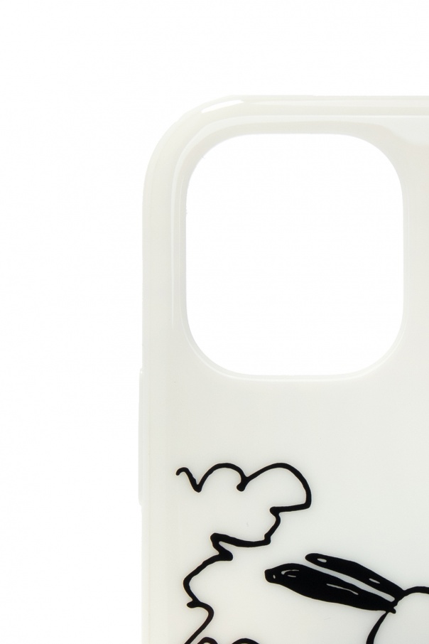 White iPhone 11 Pro case from Marc Jacobs (The) illustrated with blue, black and red graphic print with the label's logo.