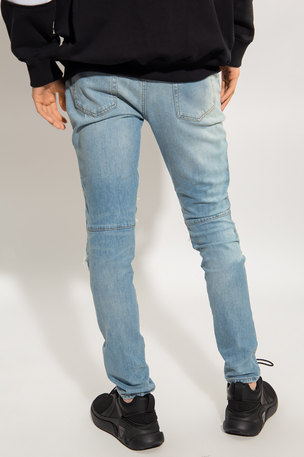 Blue jeans from Balmain. Made of cotton, this pair features button fastenings, distressed detailing and classic five pockets accompanied by two zipped ones.