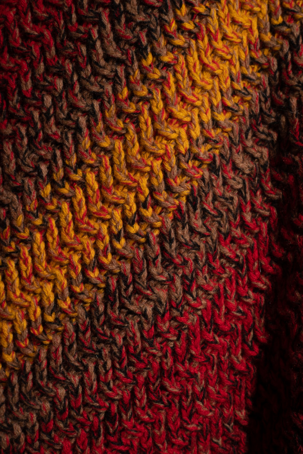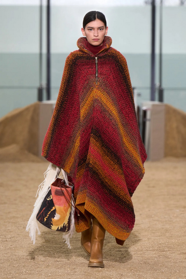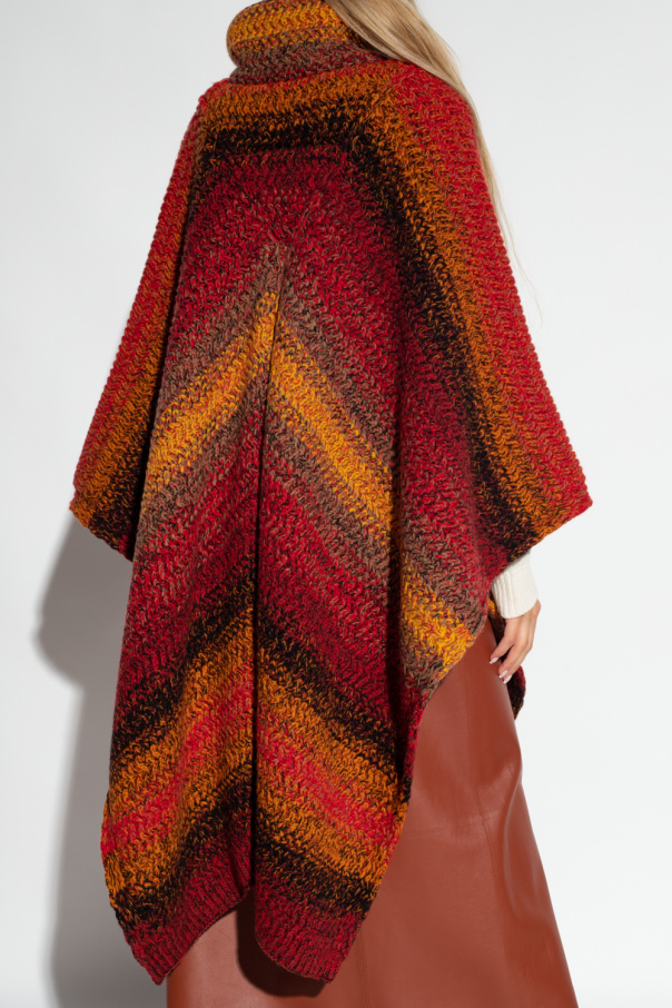 Multicolored poncho from Chloé. Crafted from recycled cashmere, this design features a high collar with a zip, decorative knit, stripe pattern and side vents.
