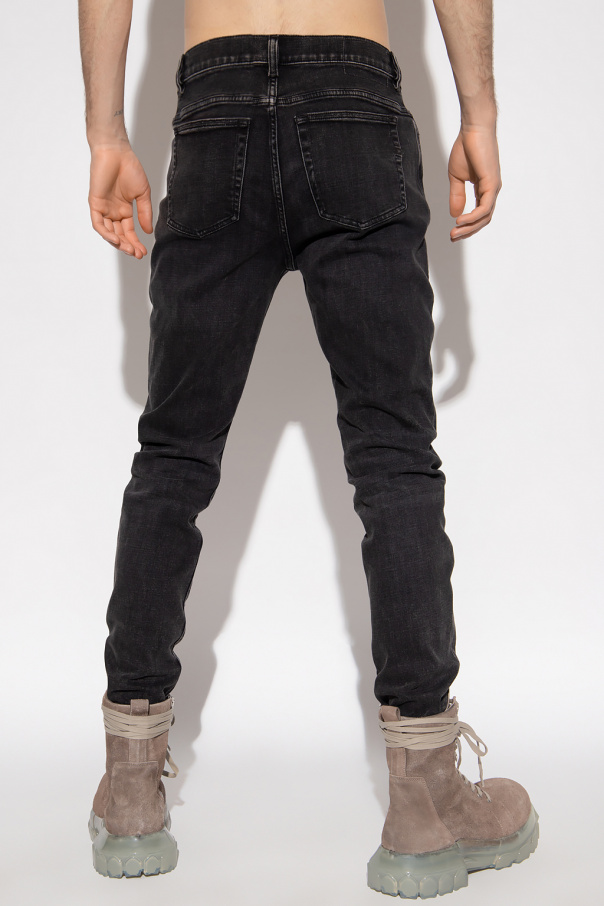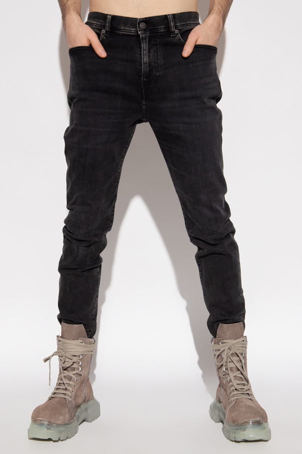 Grey ‘1983’ skinny jeans from Diesel. Embellished with a vintage treatment, this pair features a zip fly with a button, classic five pockets, a patch on the front and logo embroidery at the back.