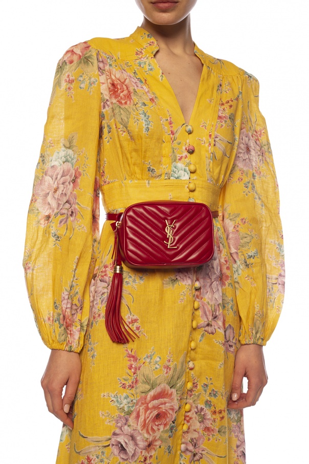 Red ‘Lou’ quilted belt bag from Saint Laurent. Crafted from calf leather, this design fastens via zip closure and showcases antique gold-tone metal hardware, including YSL initials, an external zipped pocket on the back, a detachable and adjustable strap and interior with one compartment, one slip pocket and three card slots.