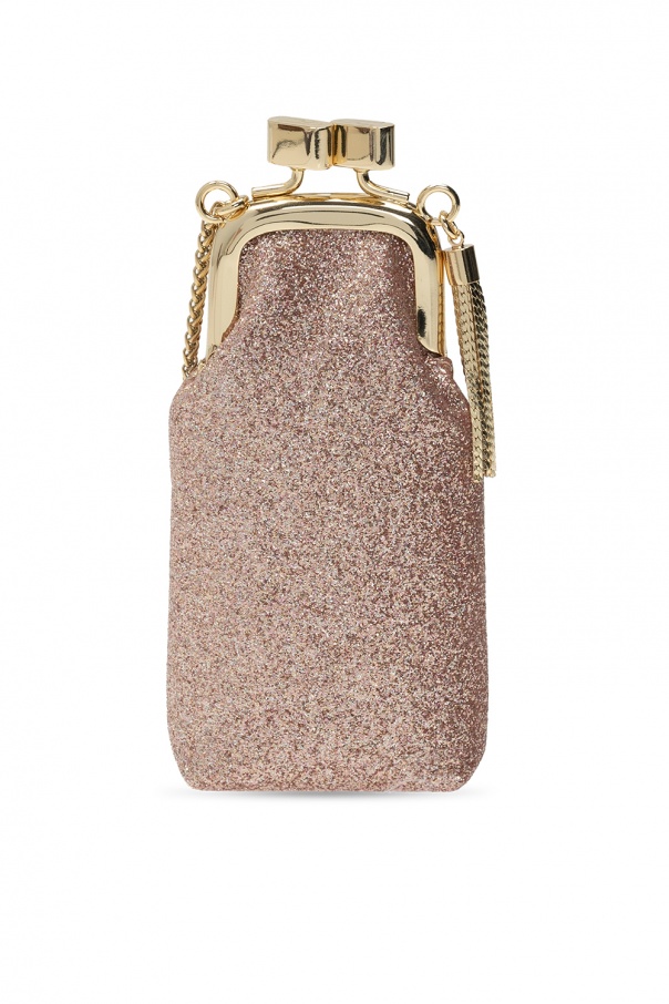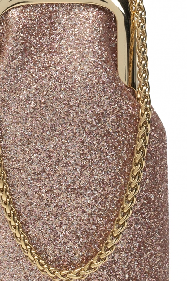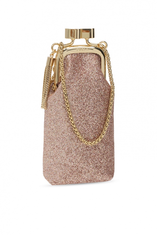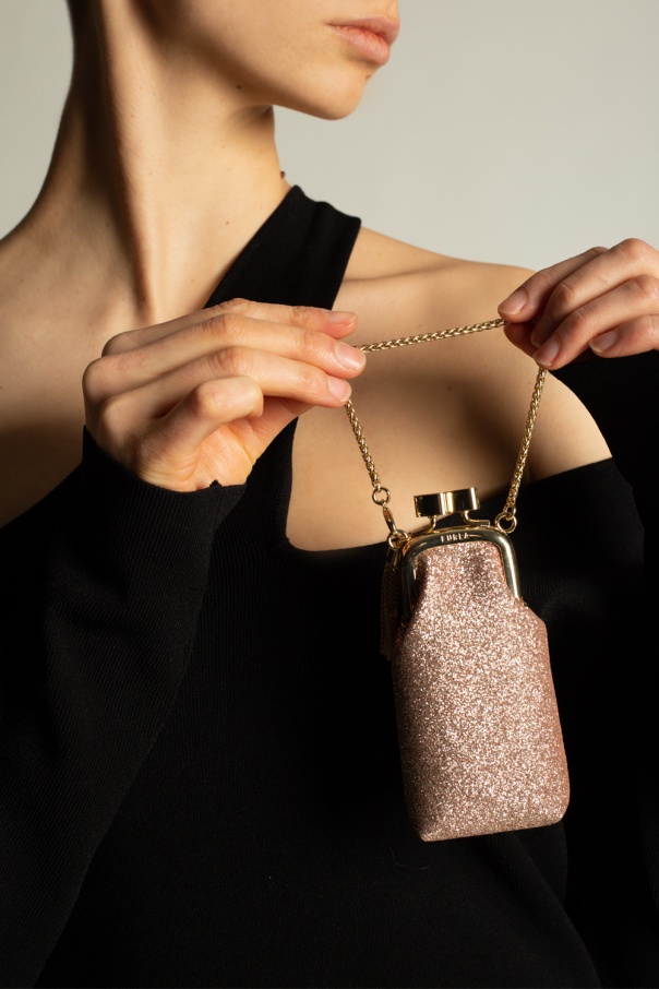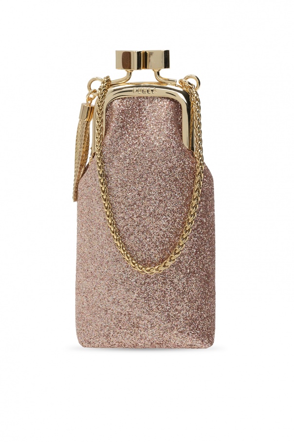 Pink ‘1927’ hand bag from Furla. Embellished with gold-tone glitter, this item is complete with snap fastening, embossed logo, chain hand strap and one internal compartment.