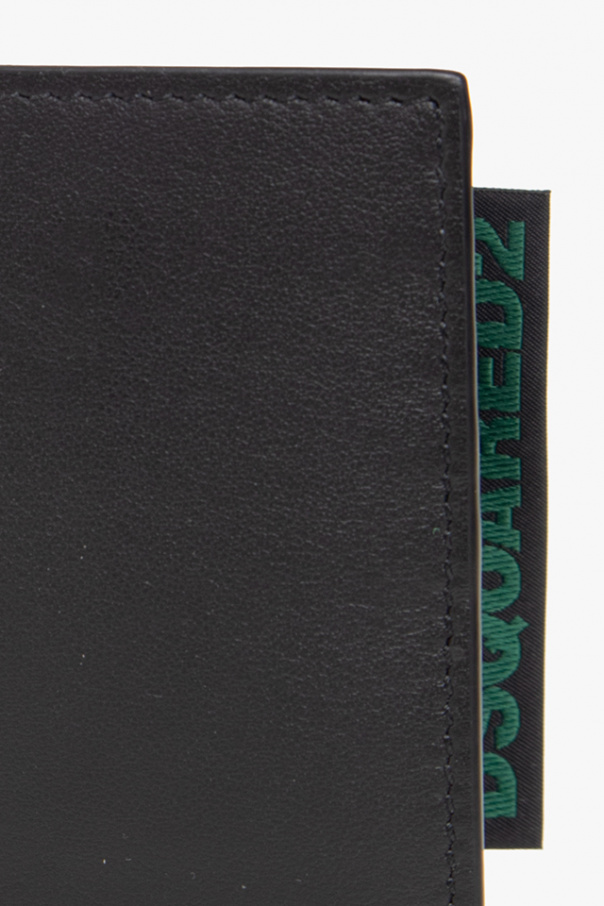 Black bifold wallet from Dsquared2. Crafted from calf leather, this item features a green logo detail and is complete with a snap-fastened coin pocket, four card slots, one bill compartment and two slip pockets.