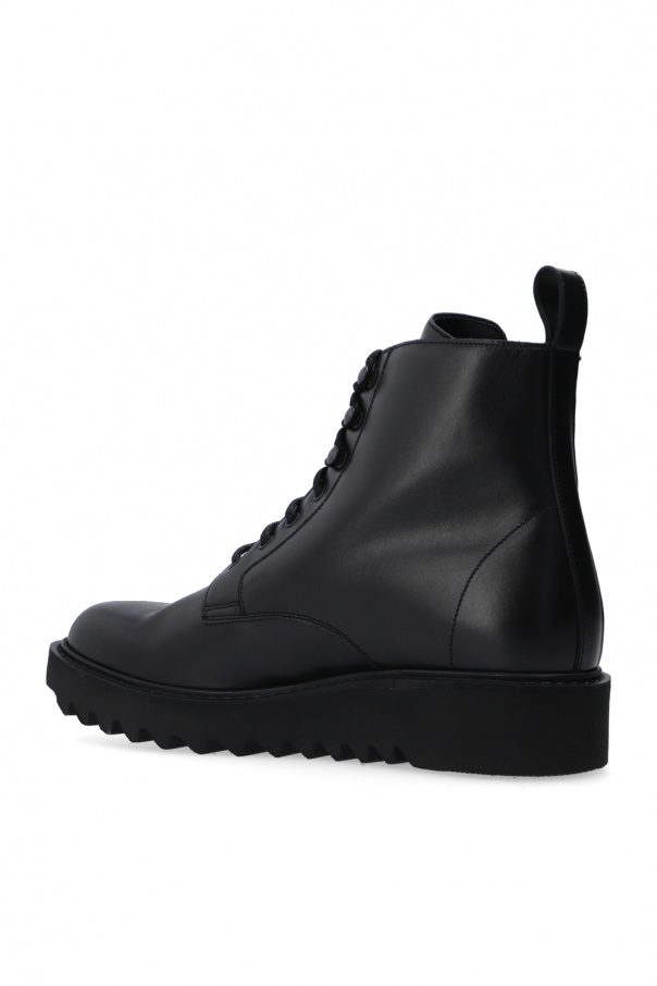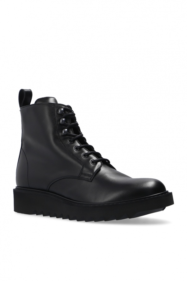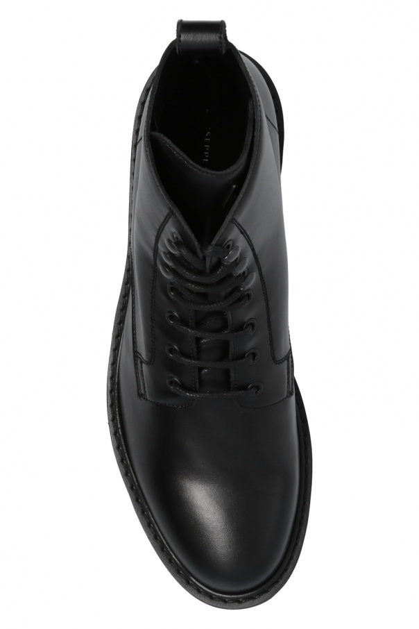 Black ‘Nevada’ ankle boots from Giuseppe Zanotti. Set on a black rubber outsole, this leather-crafted pair comes with side zip closures and antique silver-tone metal fittings.