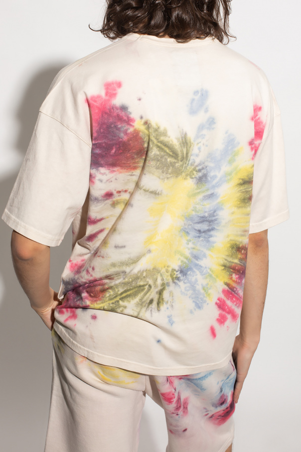 Cream crewneck T-shirt from Champion. Made of cotton, this design features a tie-dye effect and short sleeves with a logo patch.