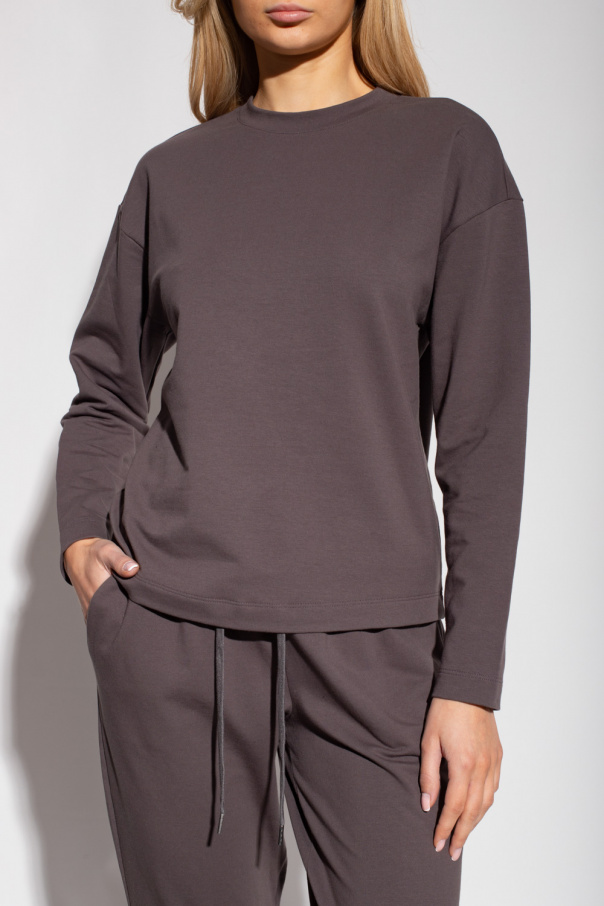 Dark grey T-shirt from Hanro. Made of cotton, this long sleeve design features a ribbed crew neck.