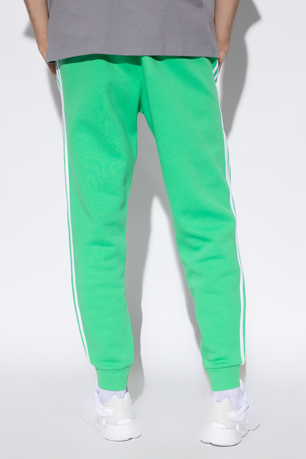 Green sweatpants from ADIDAS Originals. Crafted from cotton, this pair falls down with tapered legs and features an elasticated waistband, white logo embroidery, two zipped pockets and the label's iconic three stripes down the sides.