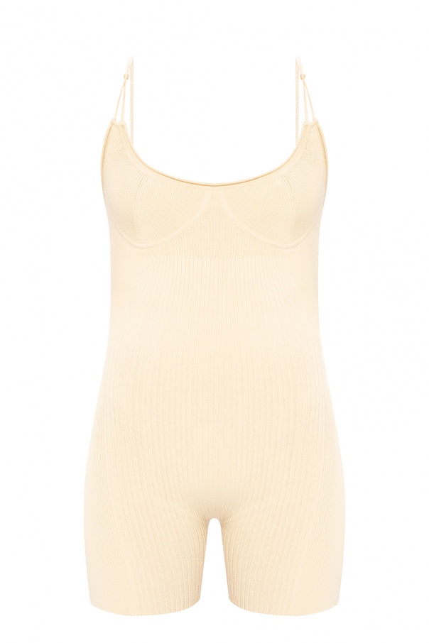 Cream 'Short' slip bodysuit from Jacquemus. Crafted in ribbed knit, this style features a sleeveless, body-hugging silhouette.