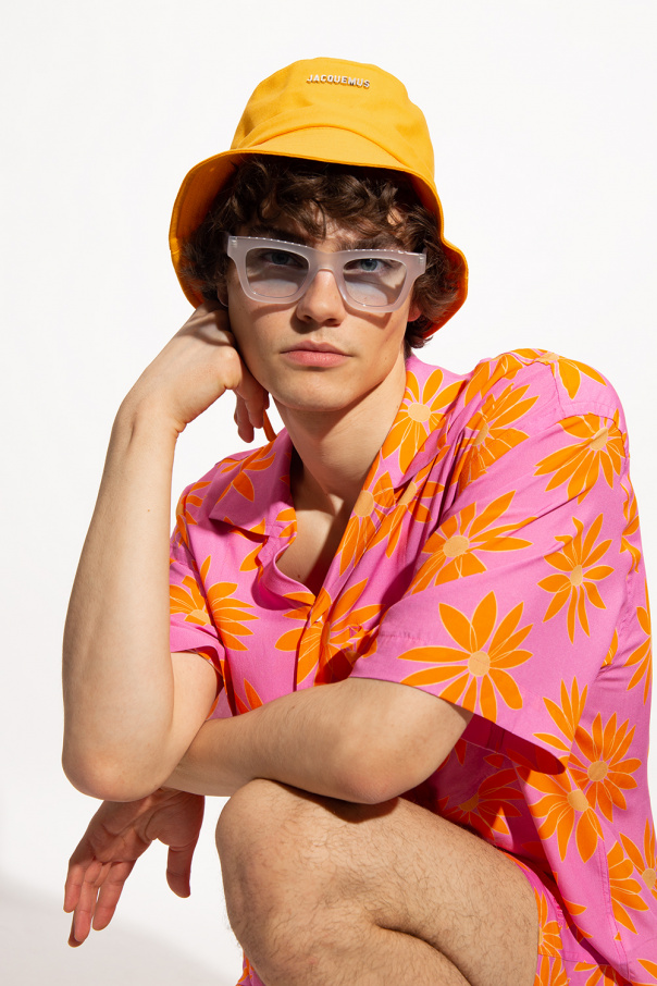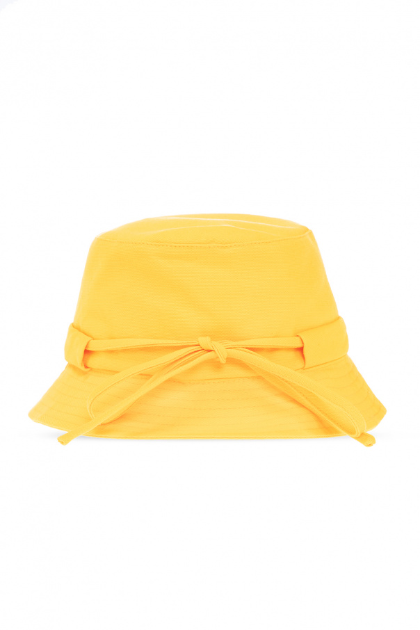 Orange bucket hat with a silver-tone logo appliqué and drawstrings from Jacquemus. Made of cotton.