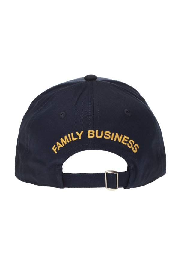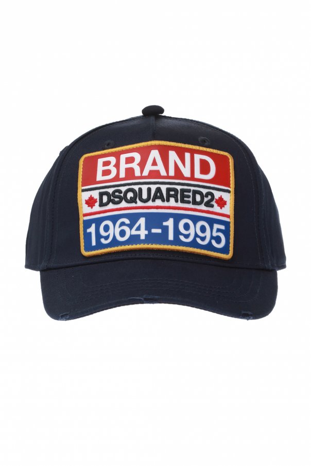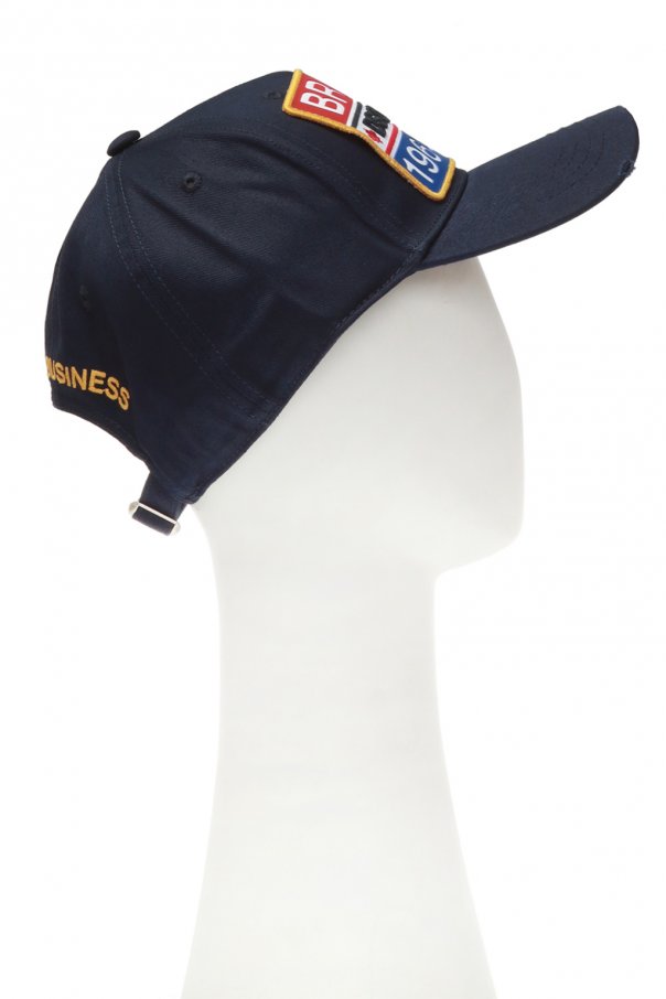 Navy baseball cap from Dsquared2. Made of cotton. Colorful logo patch on the front. Yellow lettering sewn on at the back.