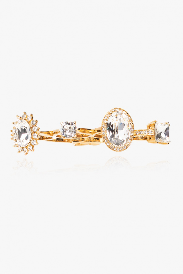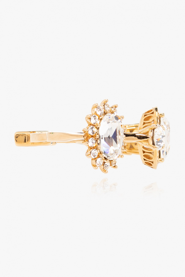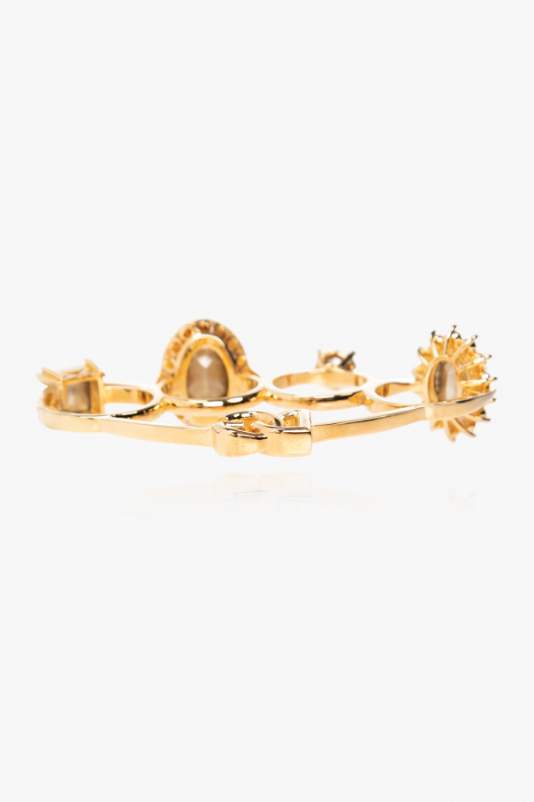Quadruple ring in gold-tone from Dolce & Gabbana. Made of brass, this item showcases the brand's logo and glossy rhinestones and crystals.
