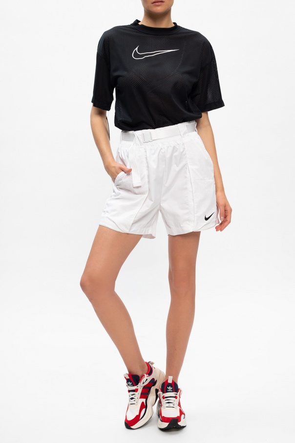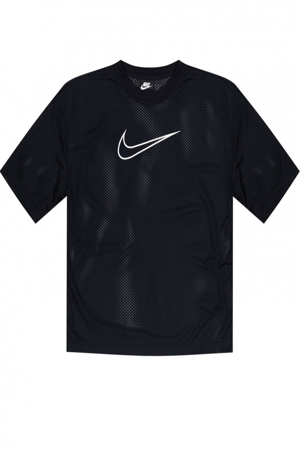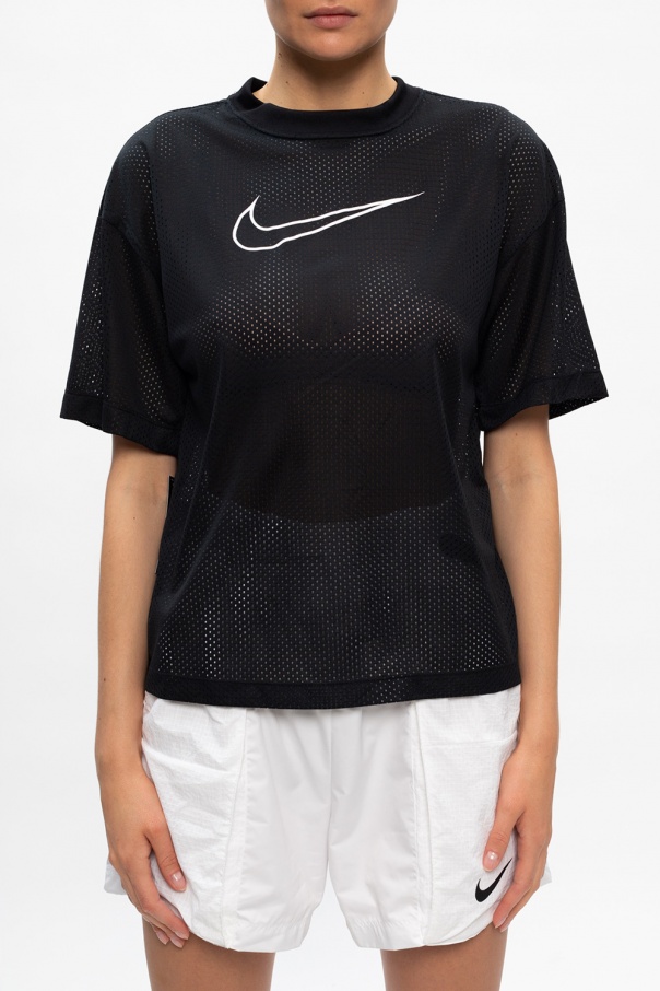 Black T-shirt from Nike. Crafted from cotton, this item features a round neck and short sleeves and is enriched by a black logo print and perforated details.