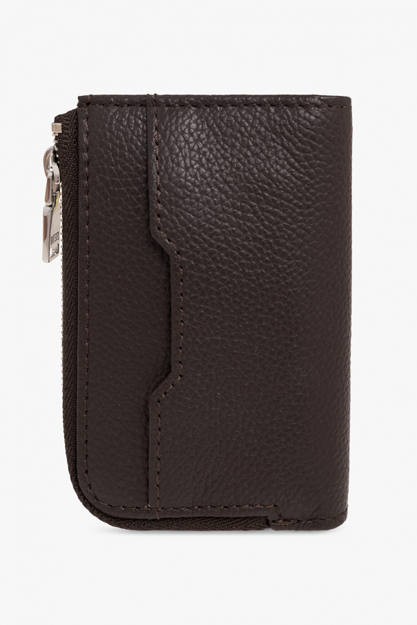 Brown ‘L-Zip Key’ key holder from Diesel. Crafted from grained cow leather, this design secures with a snap and showcases a silver-tone logo plaque, one slip pocket and one zip pocket with a detachable chain hook at the back and four key hooks inside.