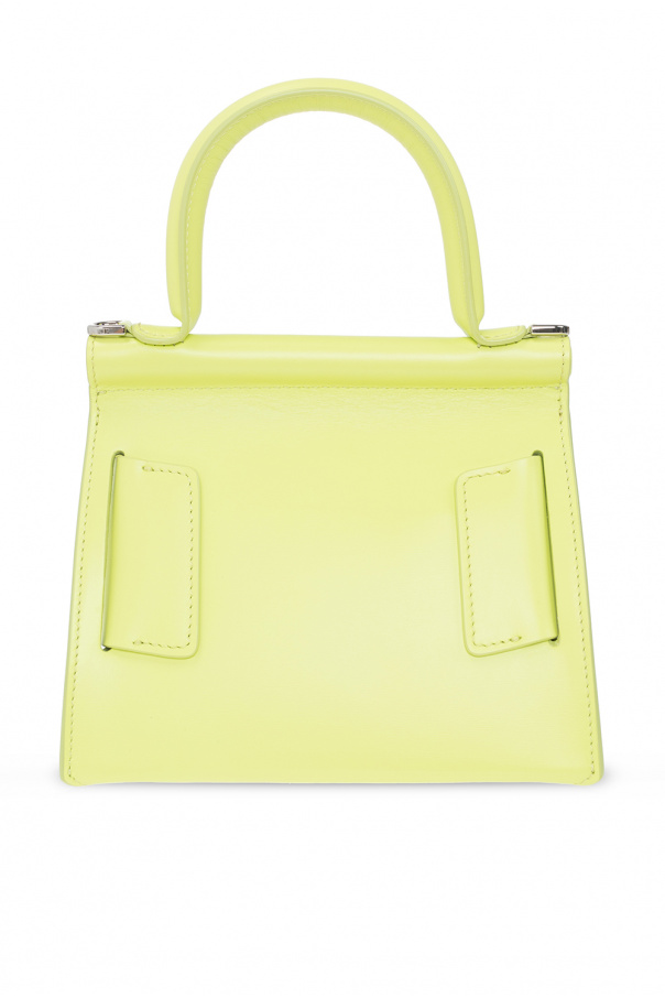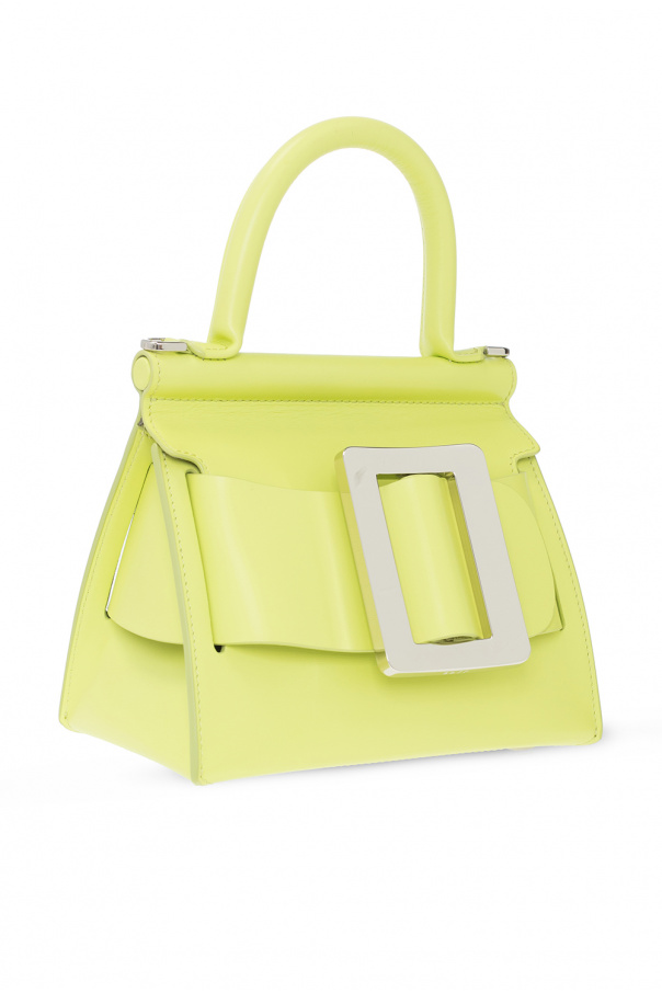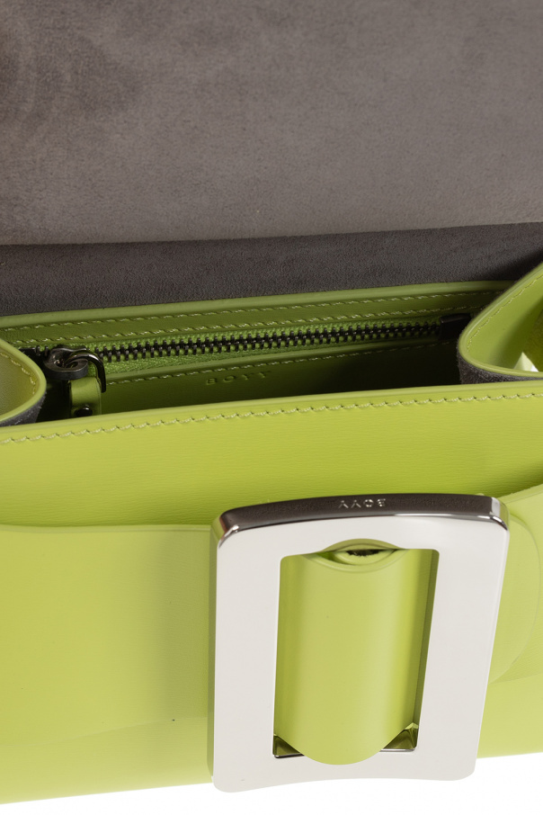 Light green ‘Karl 19’ handbag from Boyy. Made of calf leather, this design features a fold-over flap with a decorative buckle, a half-round handle, a detachable and adjustable shoulder strap, antiqued silver-tone metal hardware and a grey suede-clad interior with one compartment, one slip pocket and one zip pocket.