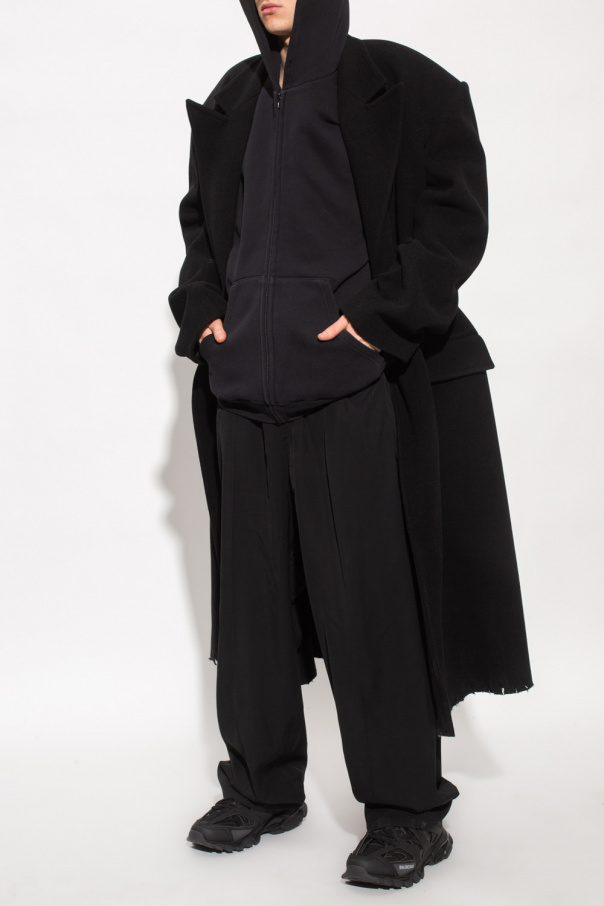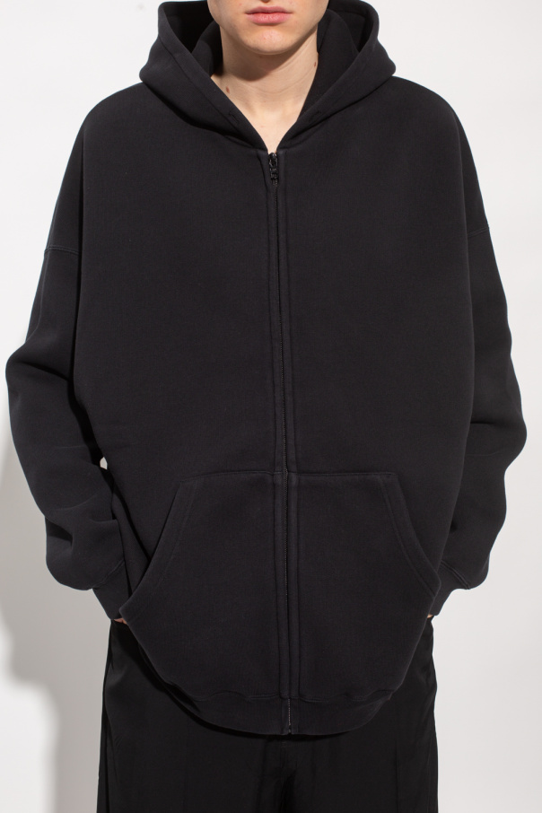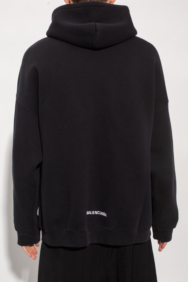 Black sweatshirt from Balenciaga. Crafted from cotton, this style features a zip fastening, two slip pockets, white logo embroidery at the back and elasticized trims on the bottom hem and cuffs.